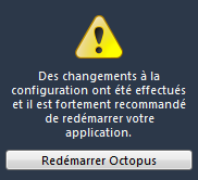 Certains changements apportés par un administrateur nécessitent un redémarrage pour être effectifs. Il peut être nécessaire pour les autres utilisateurs de rédémarrer leur Octopus afin de rendre effectifs certains changements à la configuration.