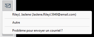 Nous avons ajouter un item Problème pour envoyer un courriel ? au menu de la commande Envoyer par courriel afin de vous donner l'occasion de consulter au besoin la solution alternative si vous vous trouvez un jour face au problème avec le Nouvel Outlook.